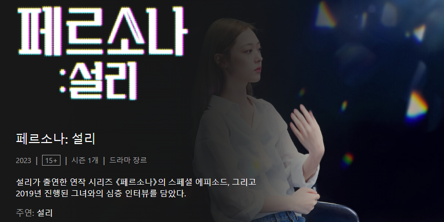 설리의 유작 <페르소나: 설리>가 11월 13일 넷플릭스를 통해 공개됐다.